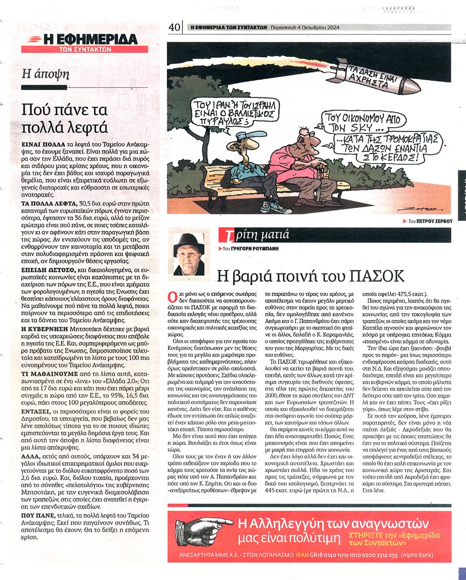 Η ΕΦΗΜΕΡΙΔΑ ΤΩΝ ΣΥΝΤΑΚΤΩΝ - 04 Οκτωβρίου 2024
