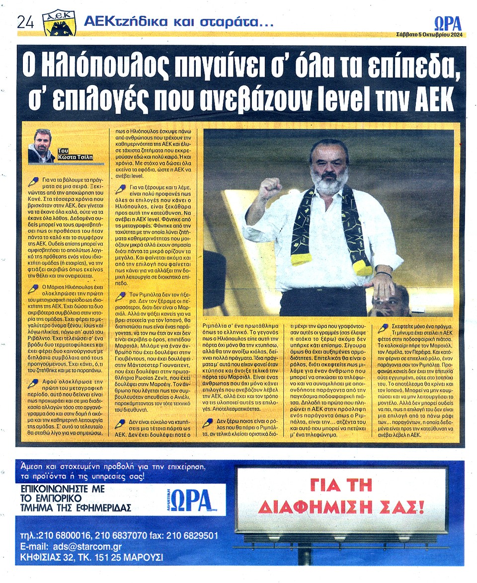 ΑΘΛΗΤΙΚΗ ΩΡΑ ΤΩΝ ΣΠΟΡ - 05 Οκτωβρίου 2024