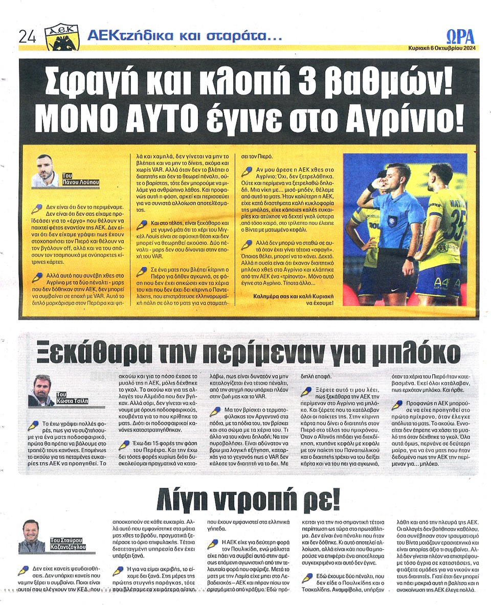 ΑΘΛΗΤΙΚΗ ΩΡΑ ΤΩΝ ΣΠΟΡ - 06 Οκτωβρίου 2024