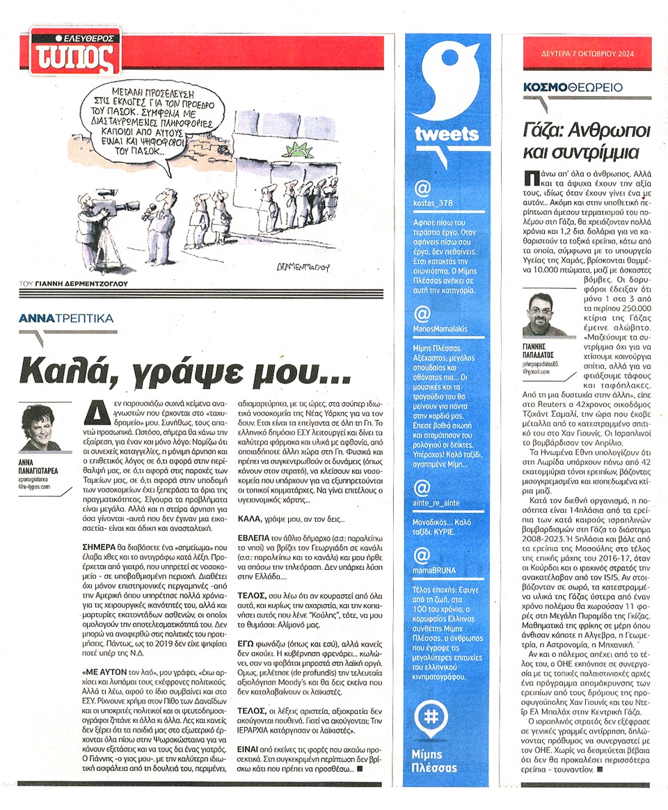 ΕΛΕΥΘΕΡΟΣ ΤΥΠΟΣ - 07 Οκτωβρίου 2024