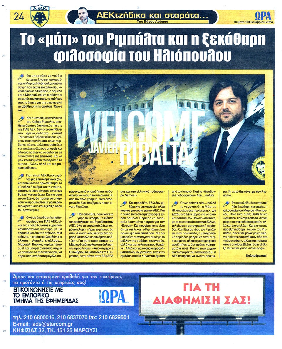 ΑΘΛΗΤΙΚΗ ΩΡΑ ΤΩΝ ΣΠΟΡ - 10 Οκτωβρίου 2024