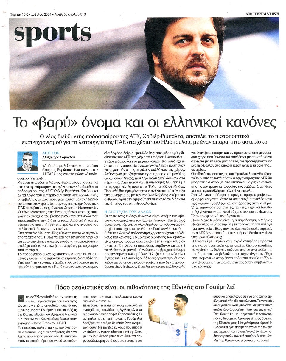ΑΠΟΓΕΥΜΑΤΙΝΗ - 10 Οκτωβρίου 2024