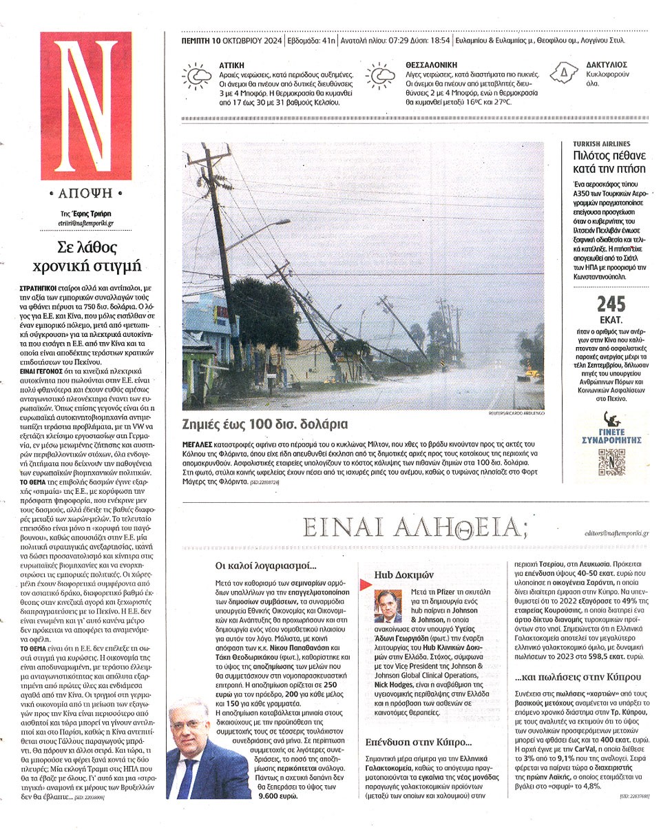 ΝΑΥΤΕΜΠΟΡΙΚΗ - 10 Οκτωβρίου 2024