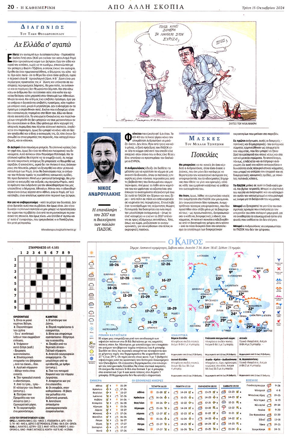 ΚΑΘΗΜΕΡΙΝΗ - 15 Οκτωβρίου 2024