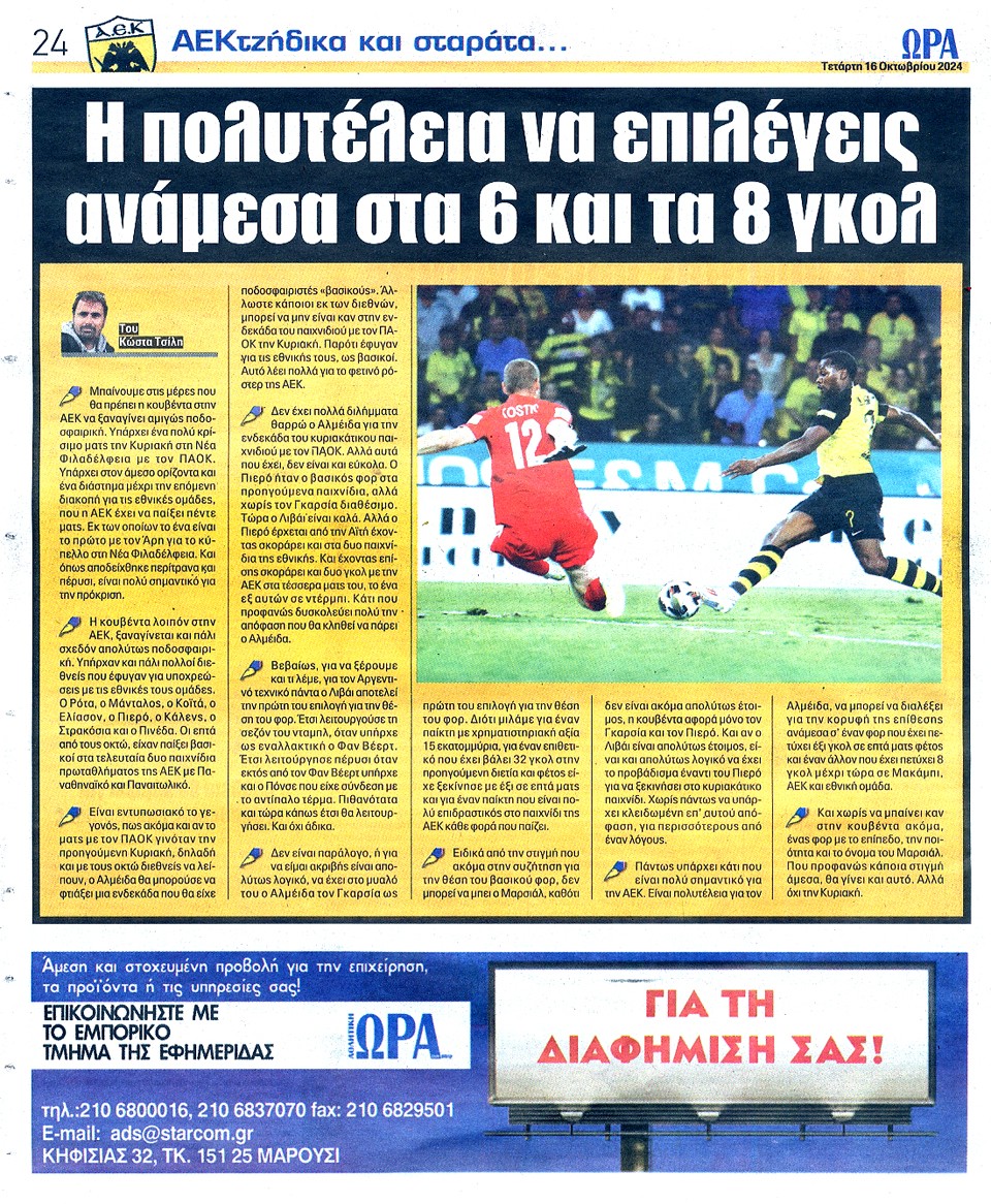 ΑΘΛΗΤΙΚΗ ΩΡΑ ΤΩΝ ΣΠΟΡ - 16 Οκτωβρίου 2024