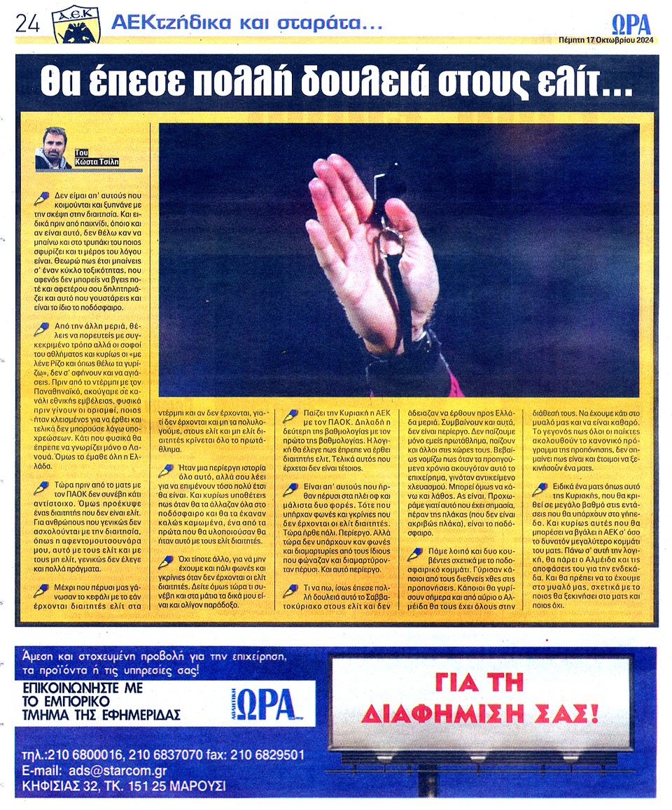 ΑΘΛΗΤΙΚΗ ΩΡΑ ΤΩΝ ΣΠΟΡ - 17 Οκτωβρίου 2024