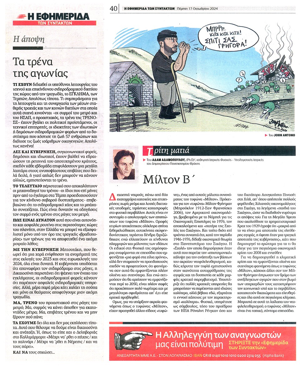 Η ΕΦΗΜΕΡΙΔΑ ΤΩΝ ΣΥΝΤΑΚΤΩΝ - 17 Οκτωβρίου 2024
