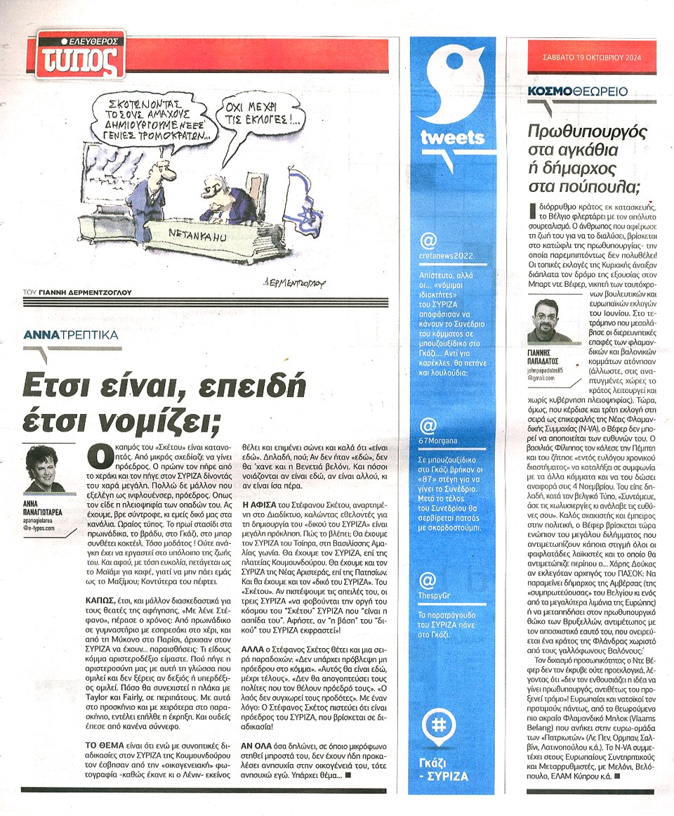 ΕΛΕΥΘΕΡΟΣ ΤΥΠΟΣ - 19 Οκτωβρίου 2024