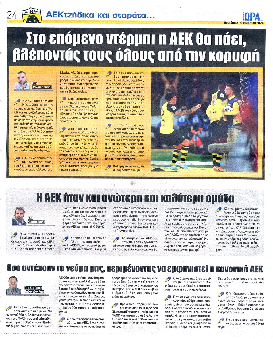 ΑΘΛΗΤΙΚΗ ΩΡΑ ΤΩΝ ΣΠΟΡ - 21 Οκτωβρίου 2024