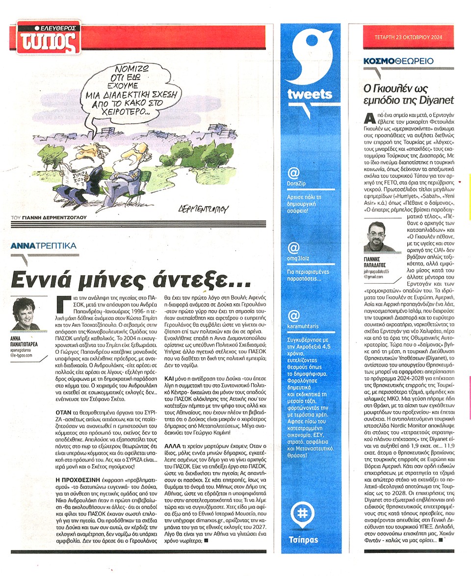 ΕΛΕΥΘΕΡΟΣ ΤΥΠΟΣ - 23 Οκτωβρίου 2024