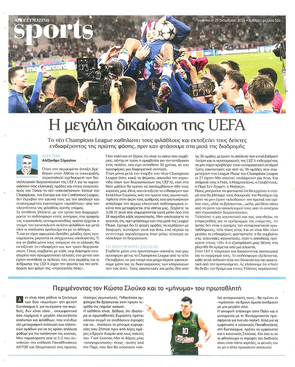 ΑΠΟΓΕΥΜΑΤΙΝΗ - 25 Οκτωβρίου 2024