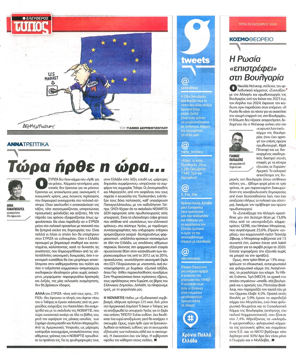 ΕΛΕΥΘΕΡΟΣ ΤΥΠΟΣ - 29 Οκτωβρίου 2024