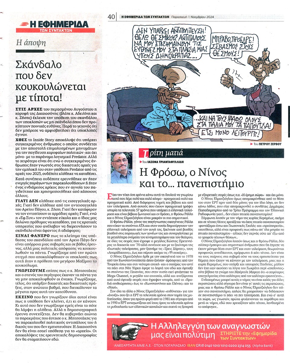 Η ΕΦΗΜΕΡΙΔΑ ΤΩΝ ΣΥΝΤΑΚΤΩΝ - 01 Νοεμβρίου 2024