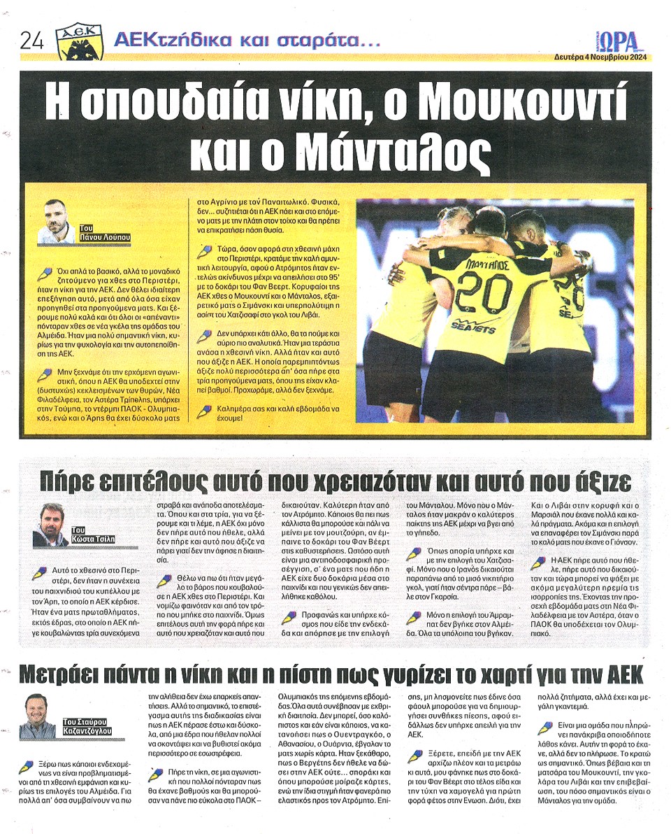 ΑΘΛΗΤΙΚΗ ΩΡΑ ΤΩΝ ΣΠΟΡ - 04 Νοεμβρίου 2024