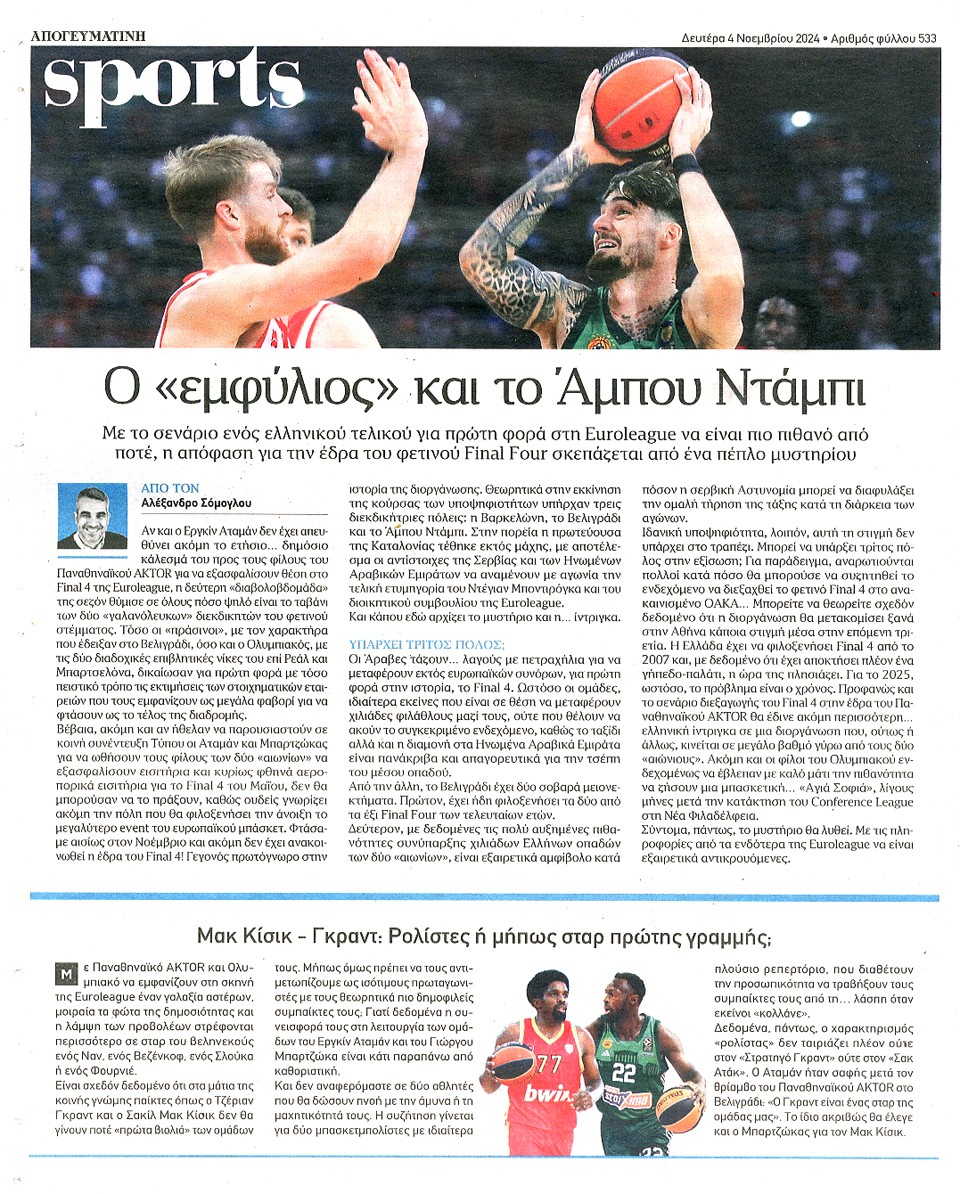 ΑΠΟΓΕΥΜΑΤΙΝΗ - 04 Νοεμβρίου 2024