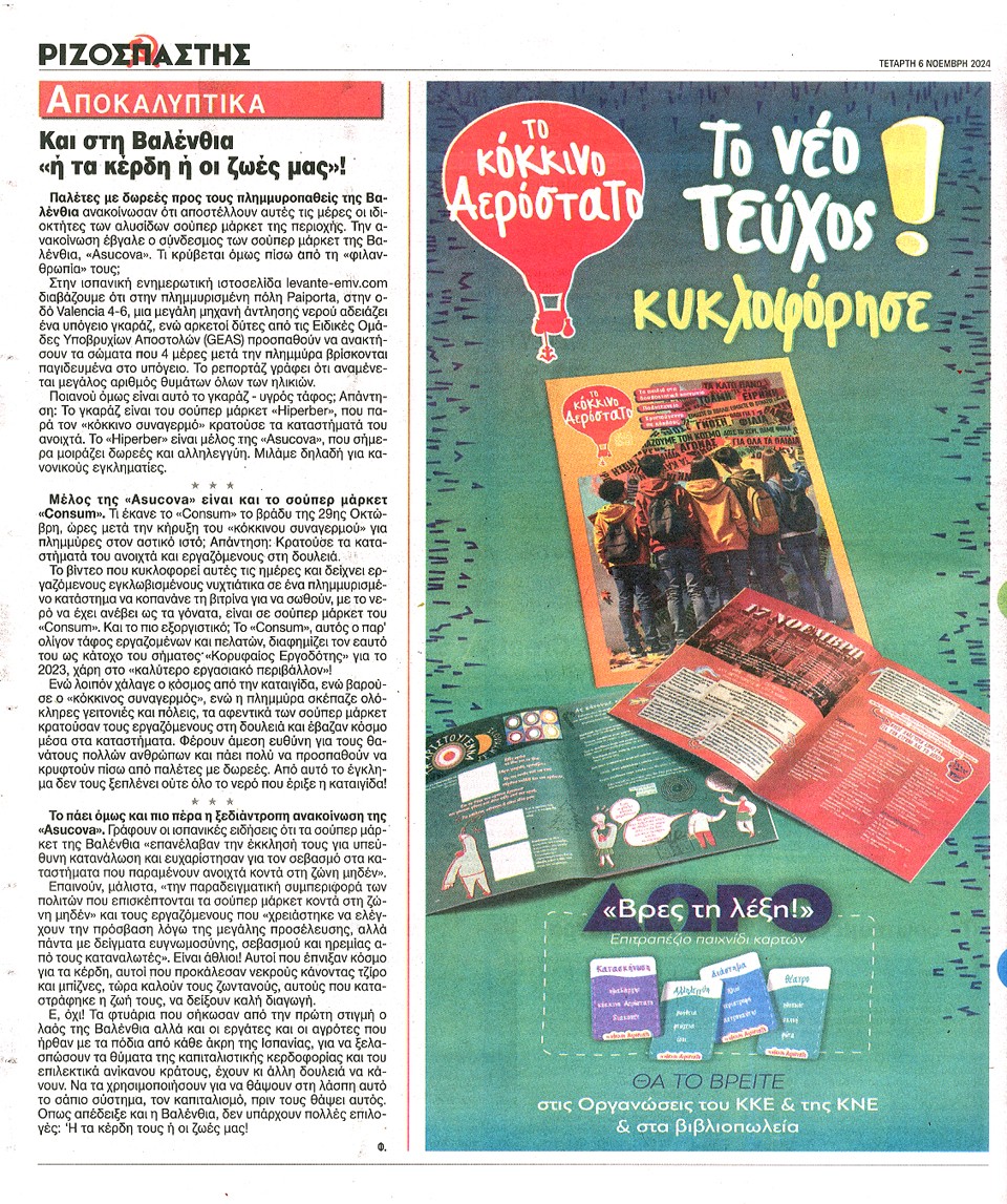ΡΙΖΟΣΠΑΣΤΗΣ - 06 Νοεμβρίου 2024