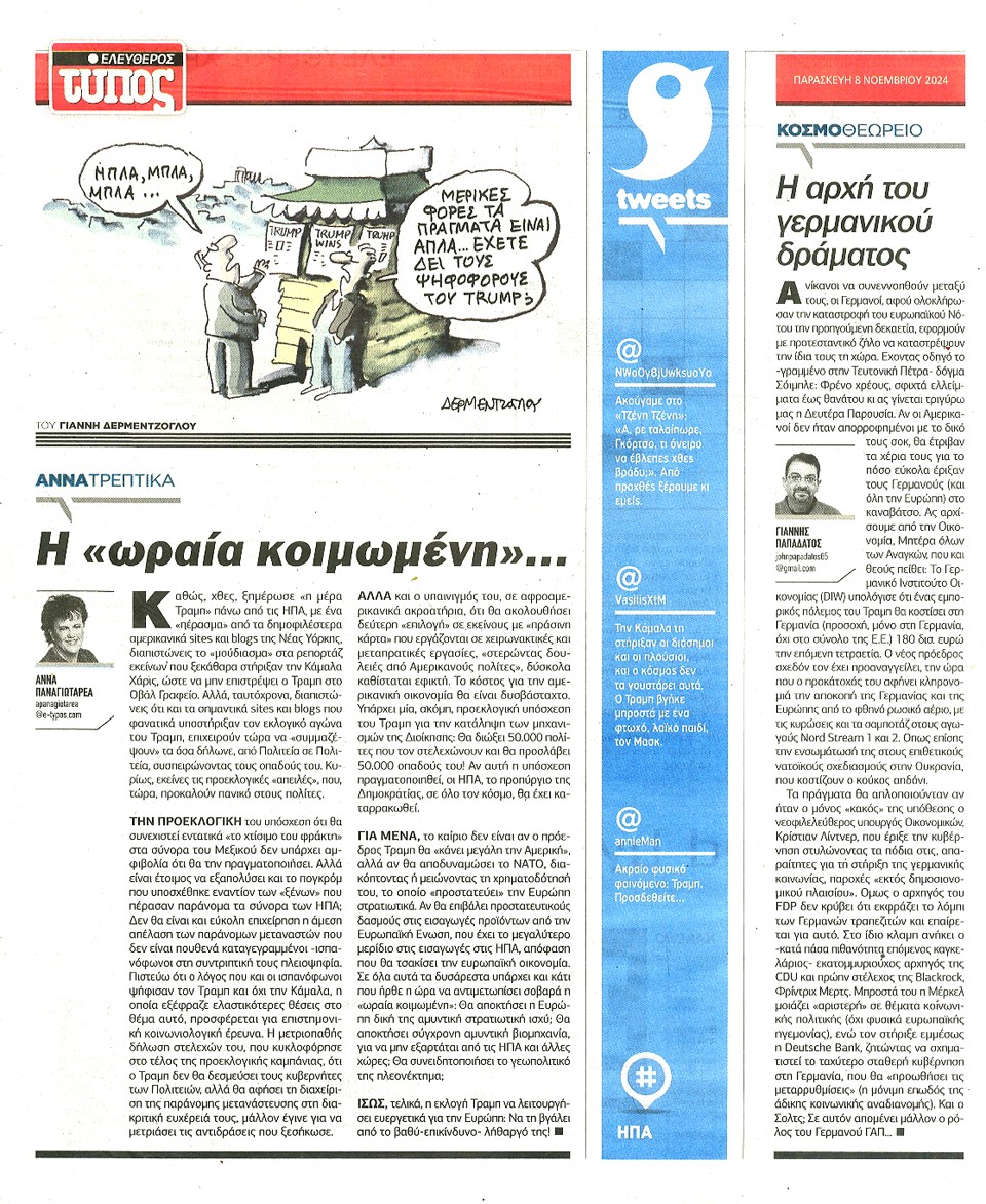 ΕΛΕΥΘΕΡΟΣ ΤΥΠΟΣ - 08 Νοεμβρίου 2024