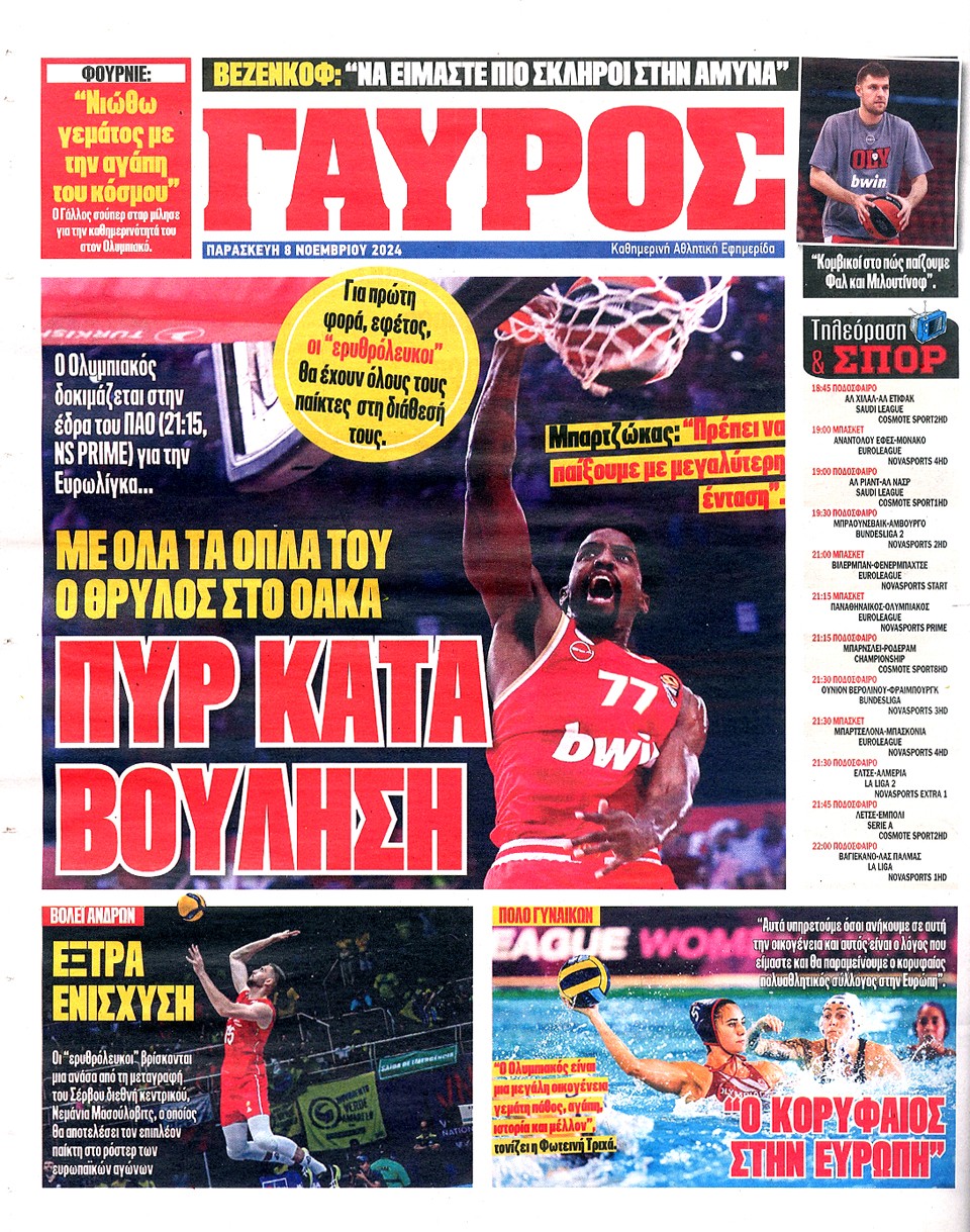ΠΡΩΤΑΘΛΗΤΗΣ - 08 Νοεμβρίου 2024