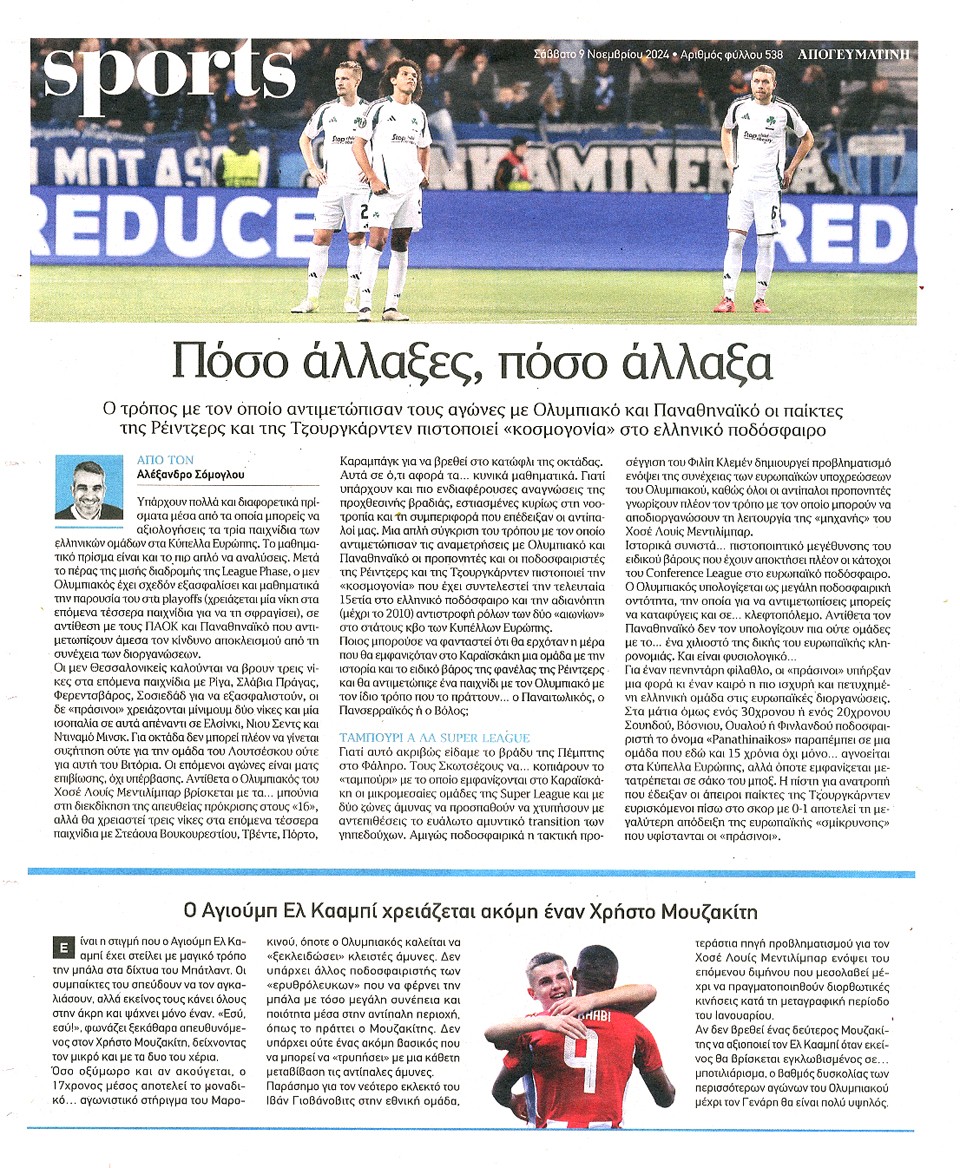 ΑΠΟΓΕΥΜΑΤΙΝΗ - 09 Νοεμβρίου 2024