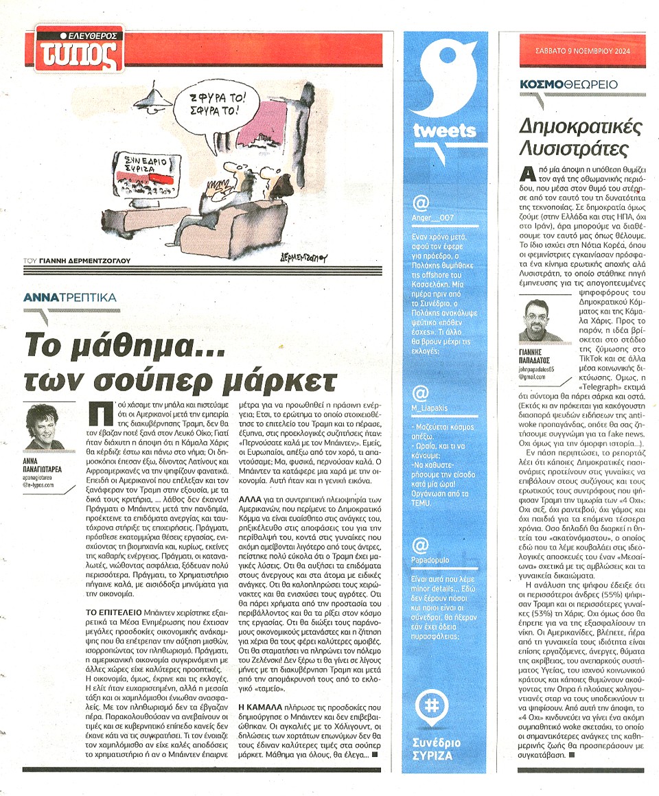 ΕΛΕΥΘΕΡΟΣ ΤΥΠΟΣ - 09 Νοεμβρίου 2024