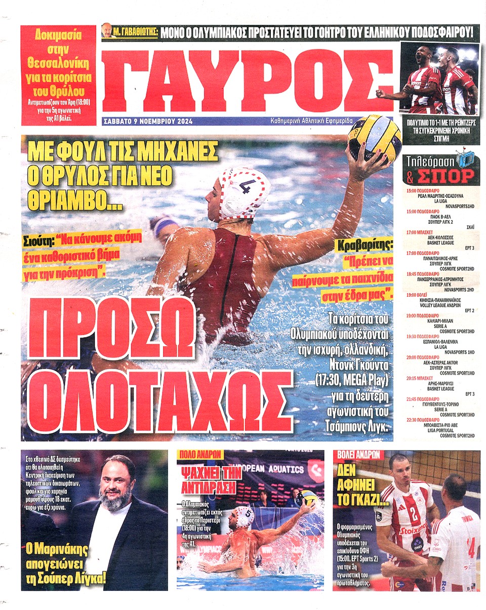 ΠΡΩΤΑΘΛΗΤΗΣ - 09 Νοεμβρίου 2024