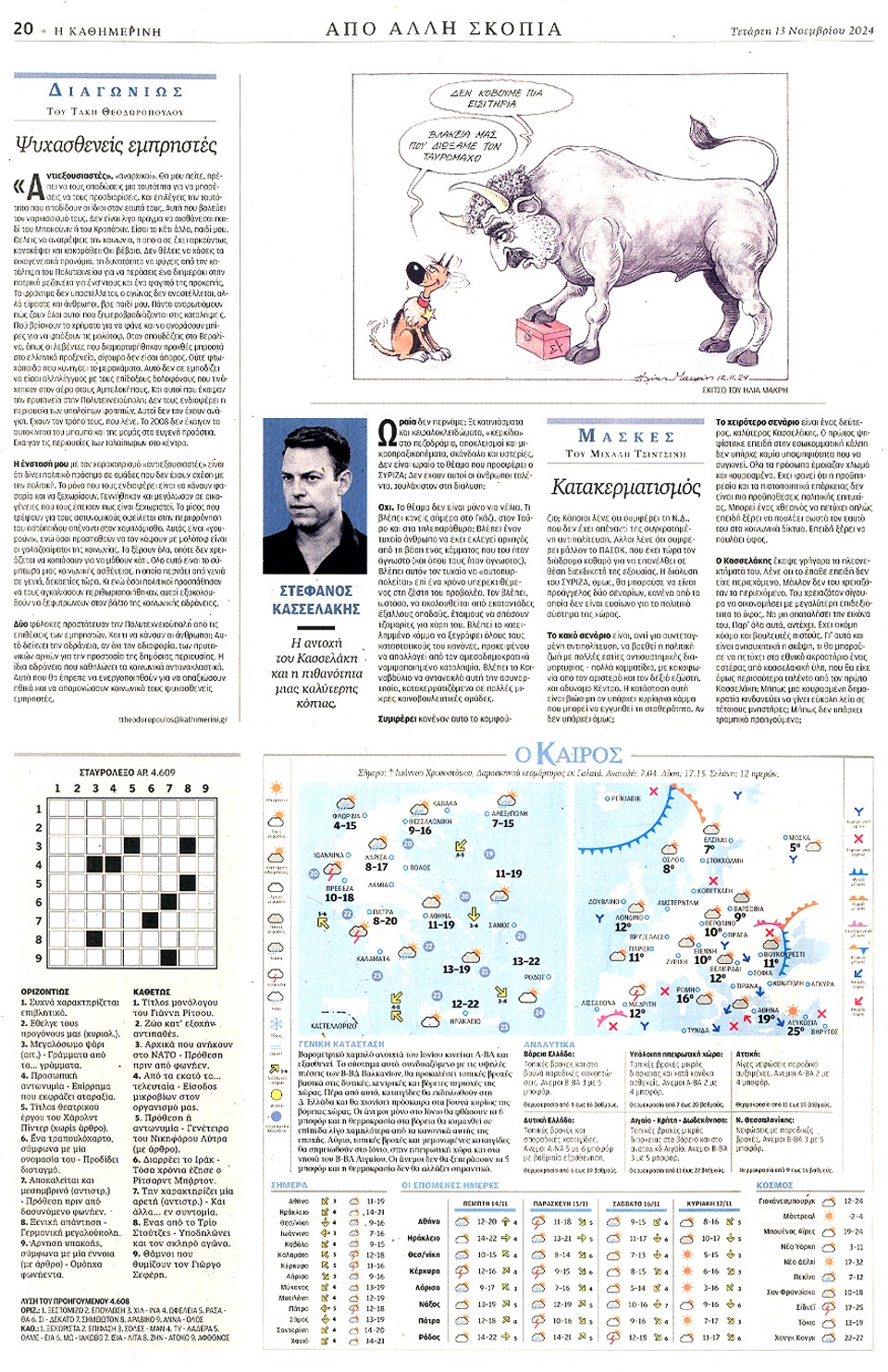 ΚΑΘΗΜΕΡΙΝΗ - 13 Νοεμβρίου 2024