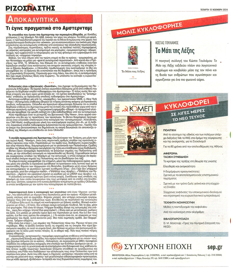 ΡΙΖΟΣΠΑΣΤΗΣ - 13 Νοεμβρίου 2024