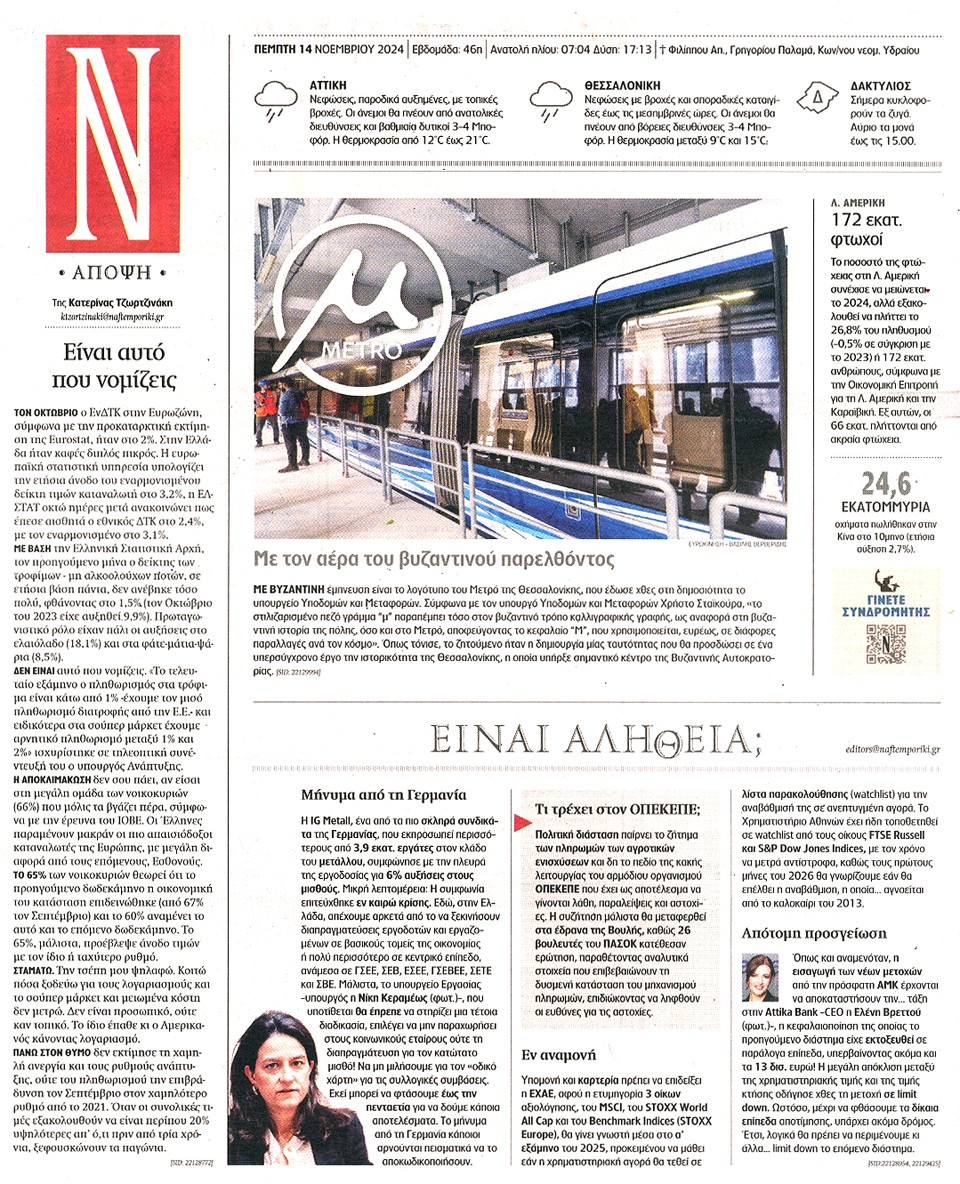 ΝΑΥΤΕΜΠΟΡΙΚΗ - 14 Νοεμβρίου 2024