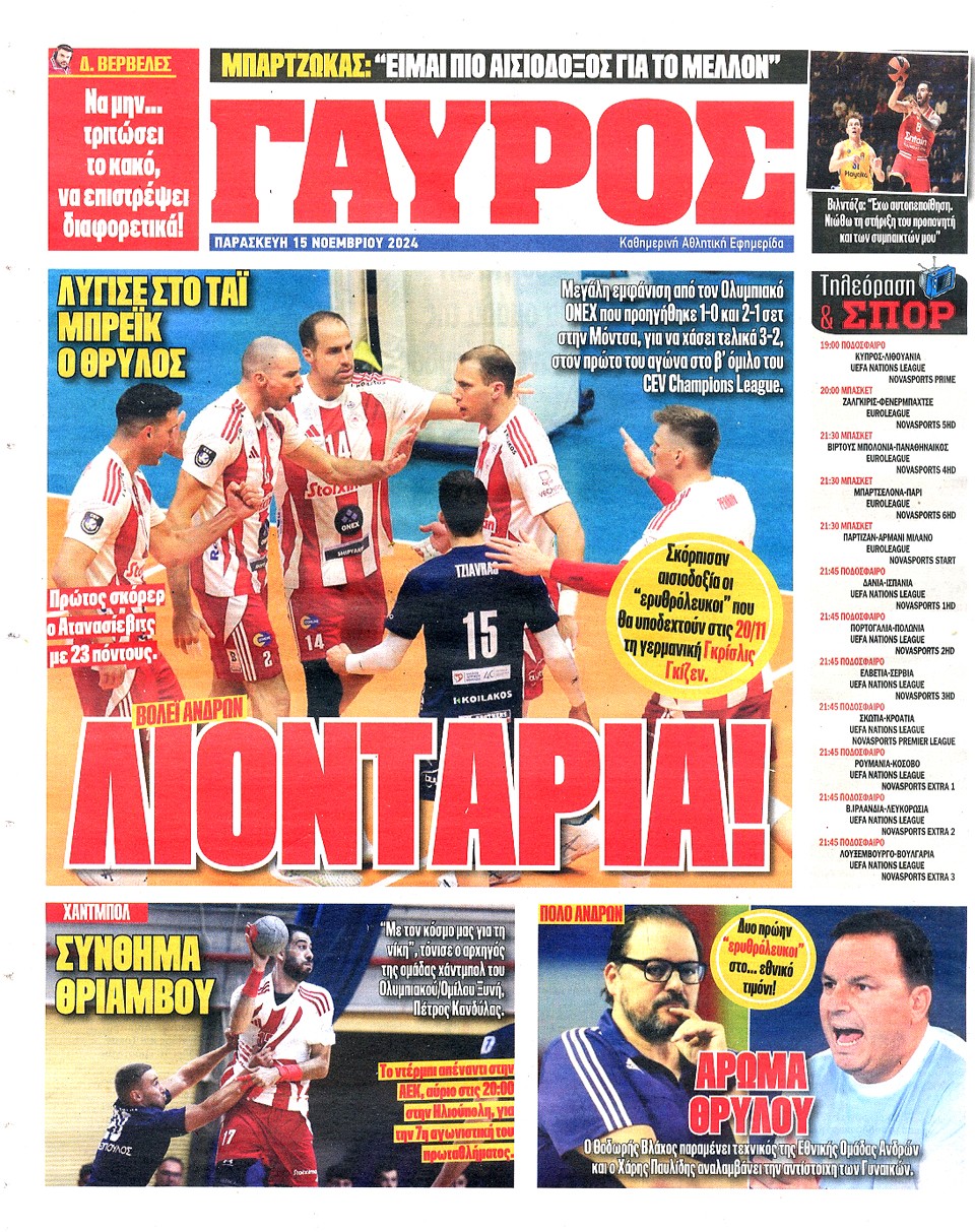 ΠΡΩΤΑΘΛΗΤΗΣ - 15 Νοεμβρίου 2024
