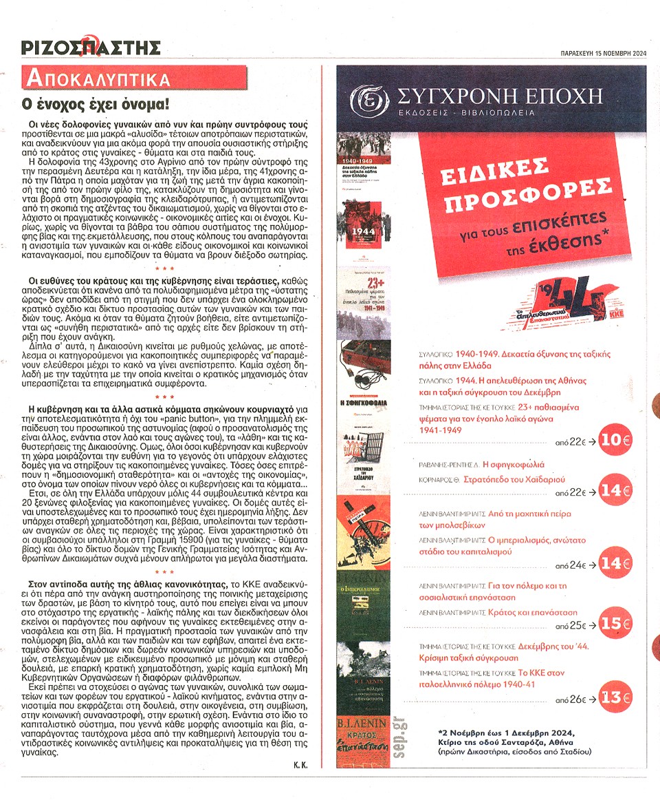 ΡΙΖΟΣΠΑΣΤΗΣ - 15 Νοεμβρίου 2024