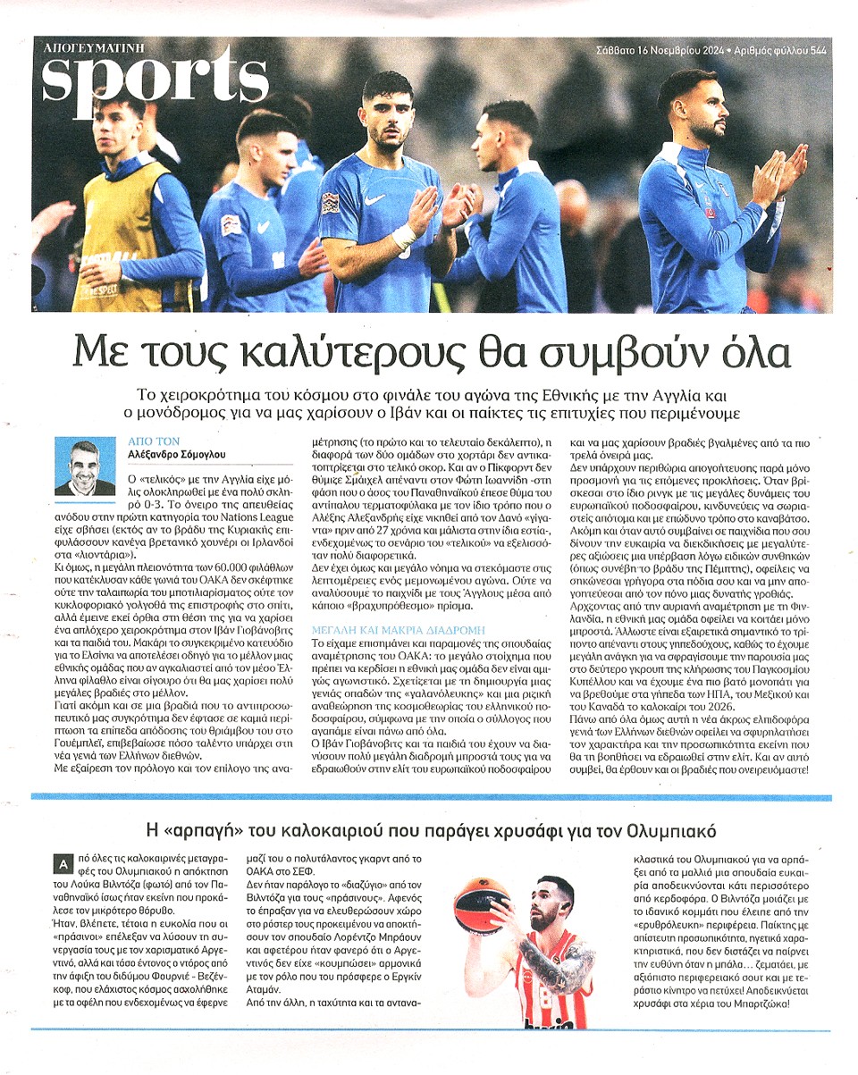ΑΠΟΓΕΥΜΑΤΙΝΗ - 16 Νοεμβρίου 2024