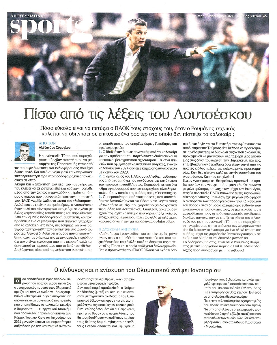 ΑΠΟΓΕΥΜΑΤΙΝΗ - 18 Νοεμβρίου 2024