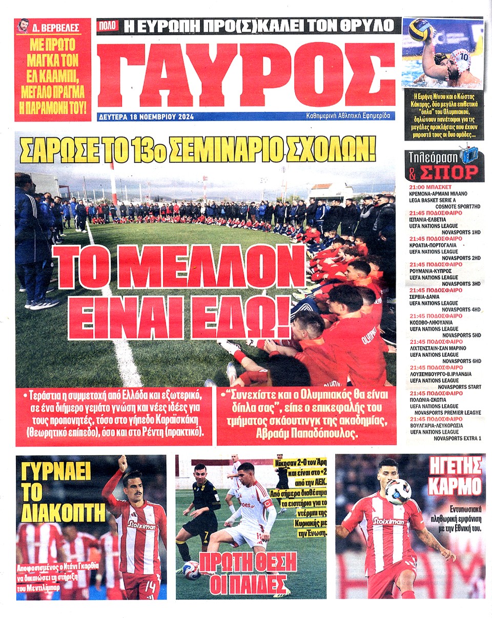 ΠΡΩΤΑΘΛΗΤΗΣ - 18 Νοεμβρίου 2024