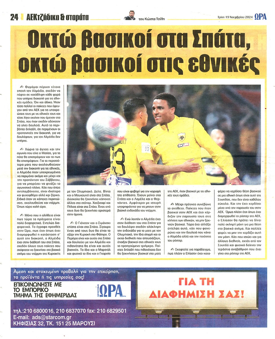 ΑΘΛΗΤΙΚΗ ΩΡΑ ΤΩΝ ΣΠΟΡ - 19 Νοεμβρίου 2024