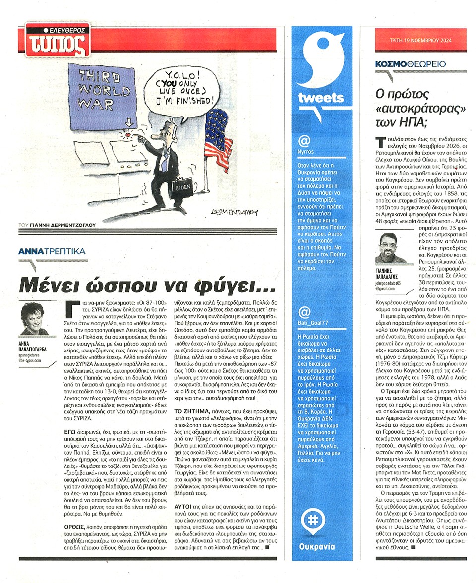 ΕΛΕΥΘΕΡΟΣ ΤΥΠΟΣ - 19 Νοεμβρίου 2024