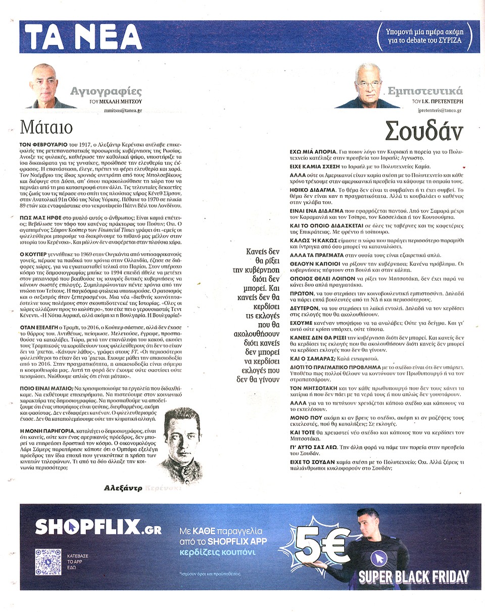 ΤΑ ΝΕΑ - 19 Νοεμβρίου 2024