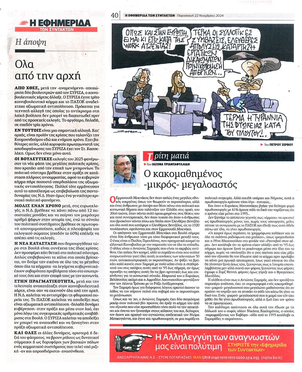 Η ΕΦΗΜΕΡΙΔΑ ΤΩΝ ΣΥΝΤΑΚΤΩΝ - 22 Νοεμβρίου 2024