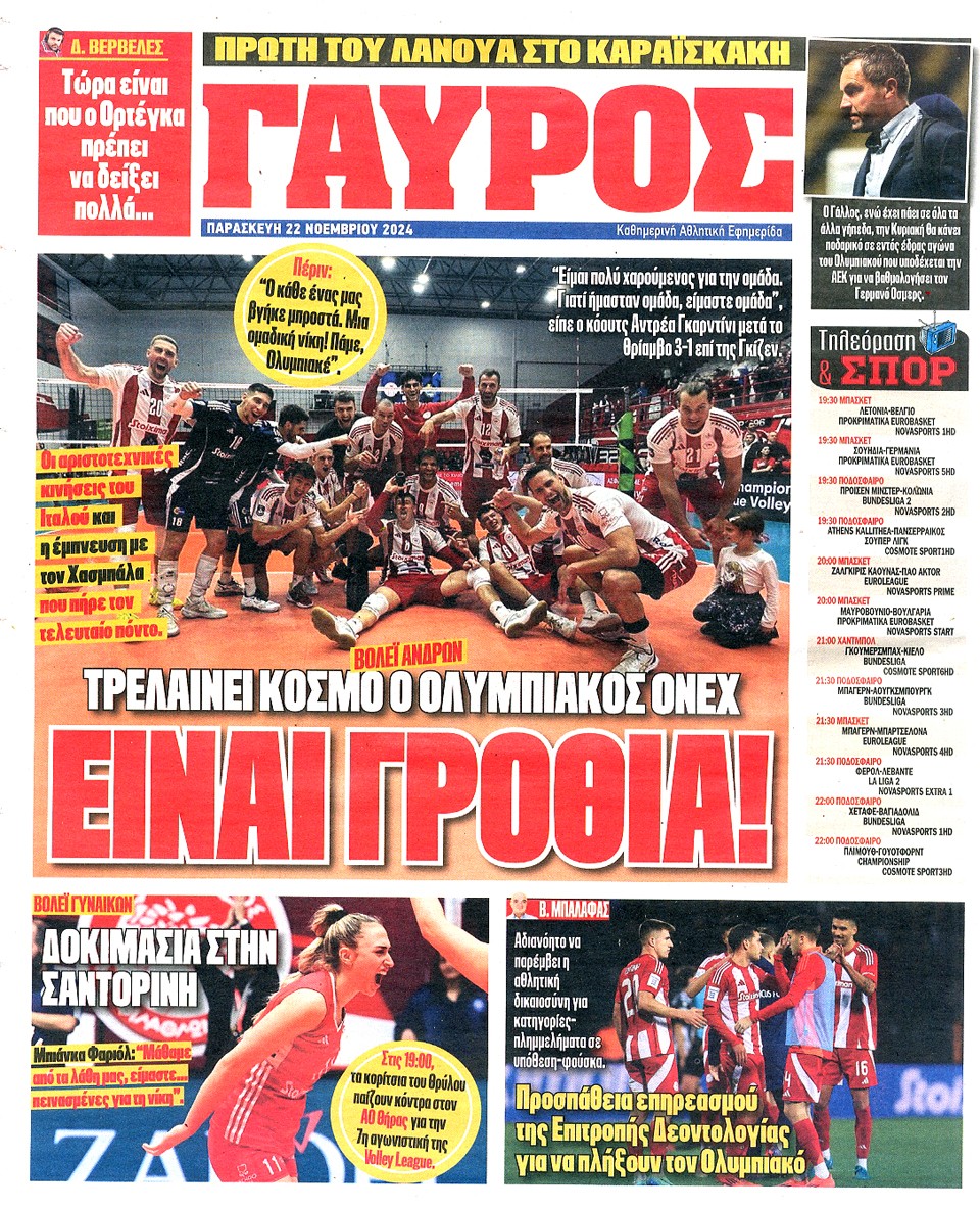 ΠΡΩΤΑΘΛΗΤΗΣ - 22 Νοεμβρίου 2024