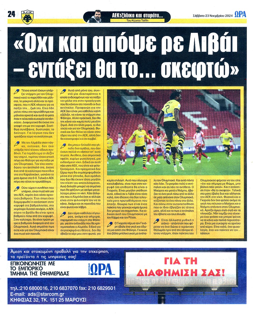 ΑΘΛΗΤΙΚΗ ΩΡΑ ΤΩΝ ΣΠΟΡ - 23 Νοεμβρίου 2024