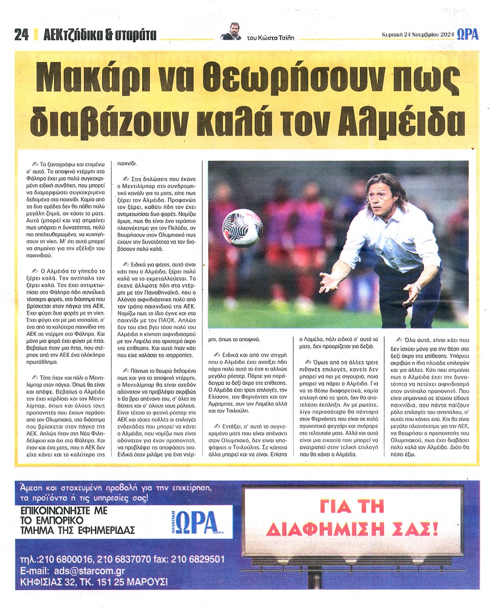 ΑΘΛΗΤΙΚΗ ΩΡΑ ΤΩΝ ΣΠΟΡ - 24 Νοεμβρίου 2024