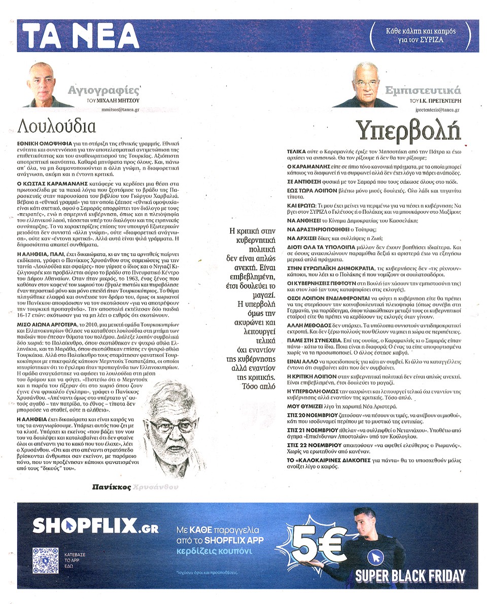 ΤΑ ΝΕΑ - 25 Νοεμβρίου 2024