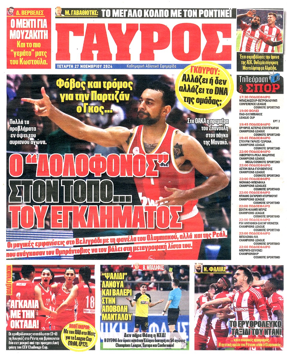 ΠΡΩΤΑΘΛΗΤΗΣ - 27 Νοεμβρίου 2024