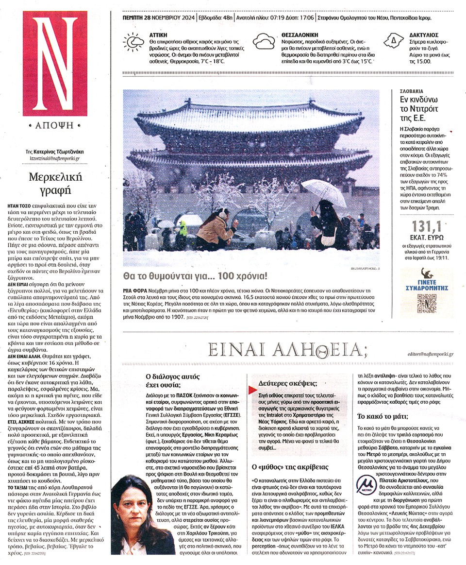 ΝΑΥΤΕΜΠΟΡΙΚΗ - 28 Νοεμβρίου 2024