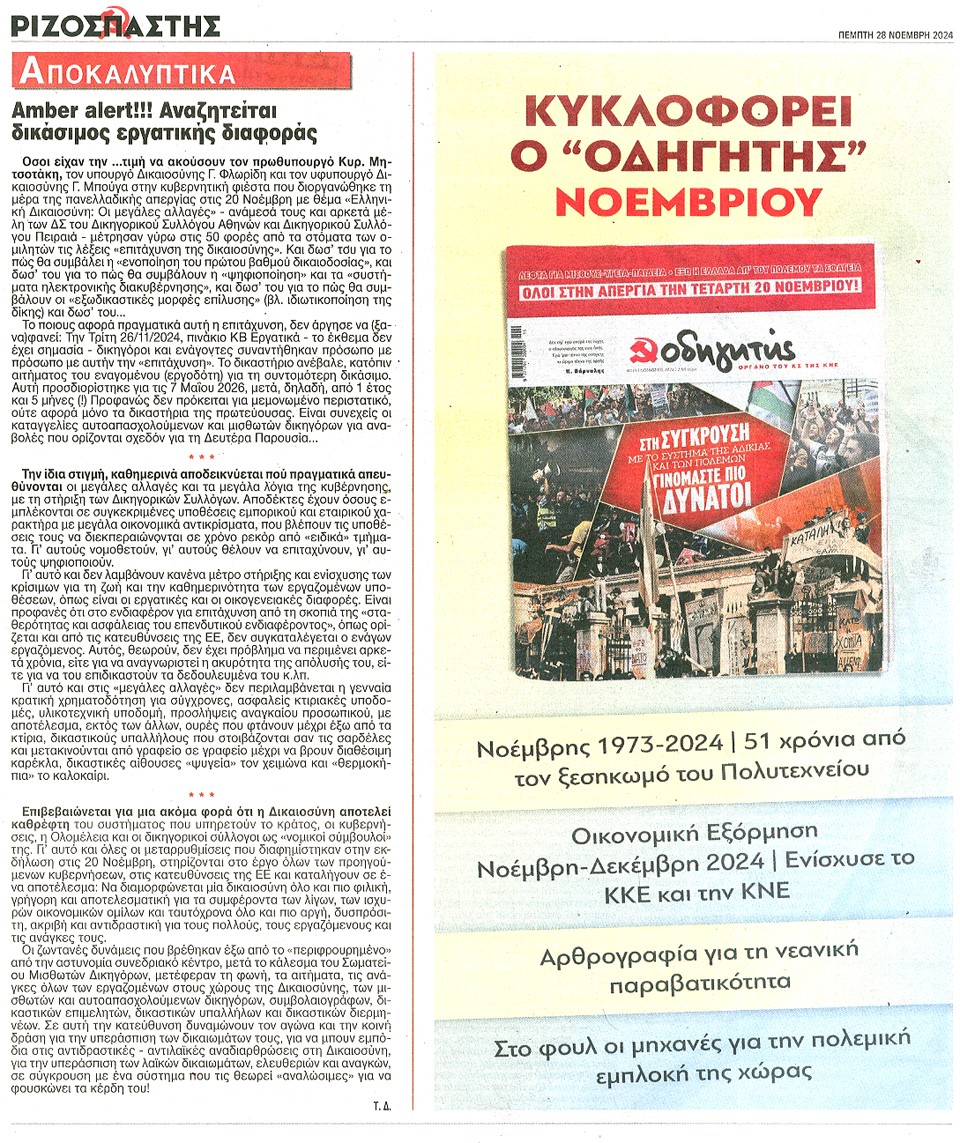 ΡΙΖΟΣΠΑΣΤΗΣ - 28 Νοεμβρίου 2024
