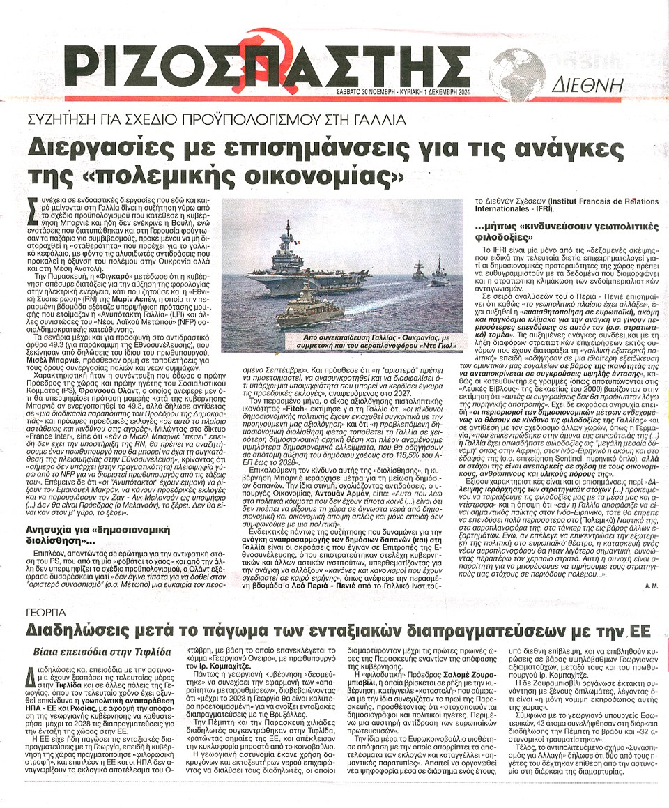 ΡΙΖΟΣΠΑΣΤΗΣ ΤΗΣ ΚΥΡΙΑΚΗΣ - 30 Νοεμβρίου 2024