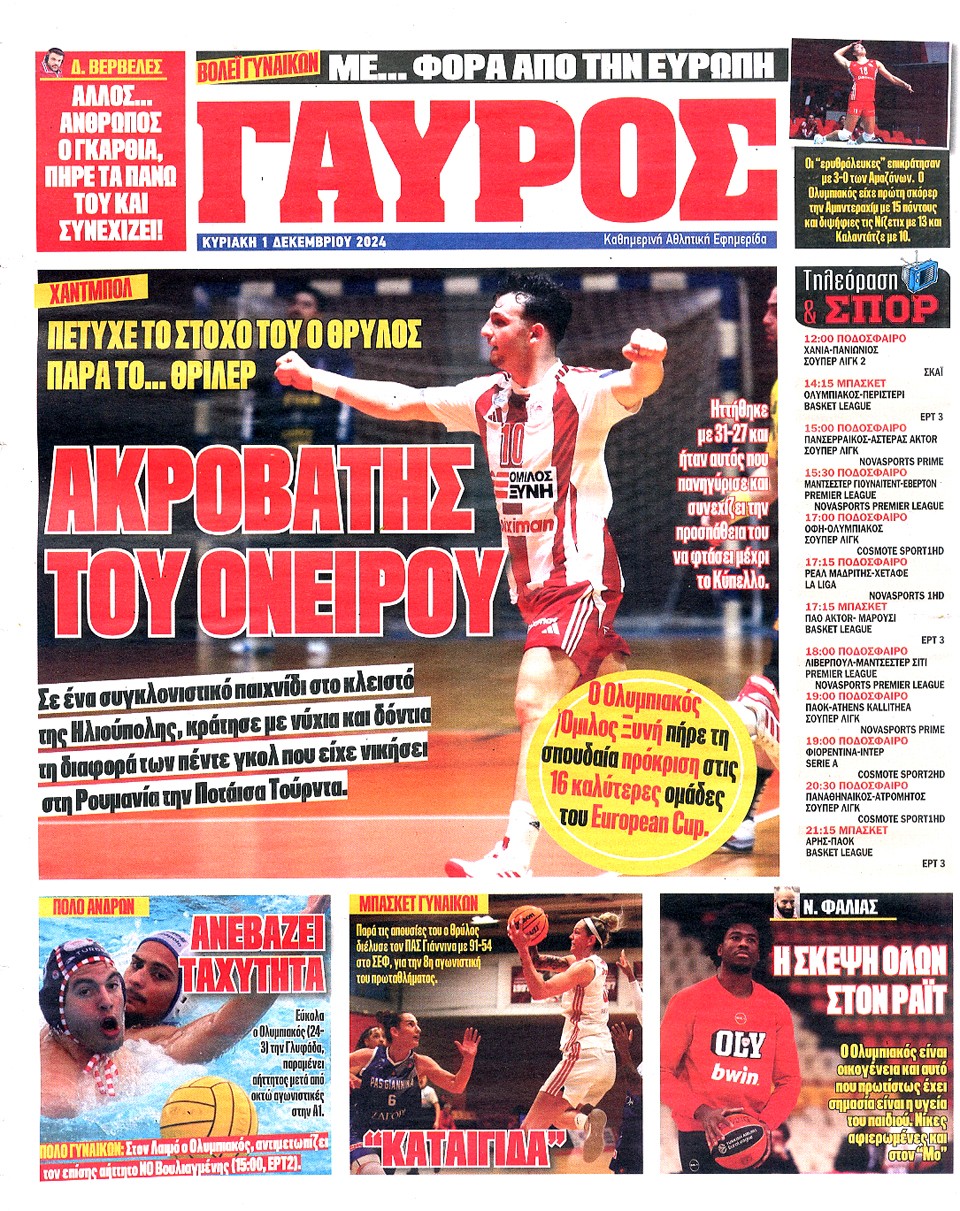 ΠΡΩΤΑΘΛΗΤΗΣ - 01 Δεκεμβρίου 2024
