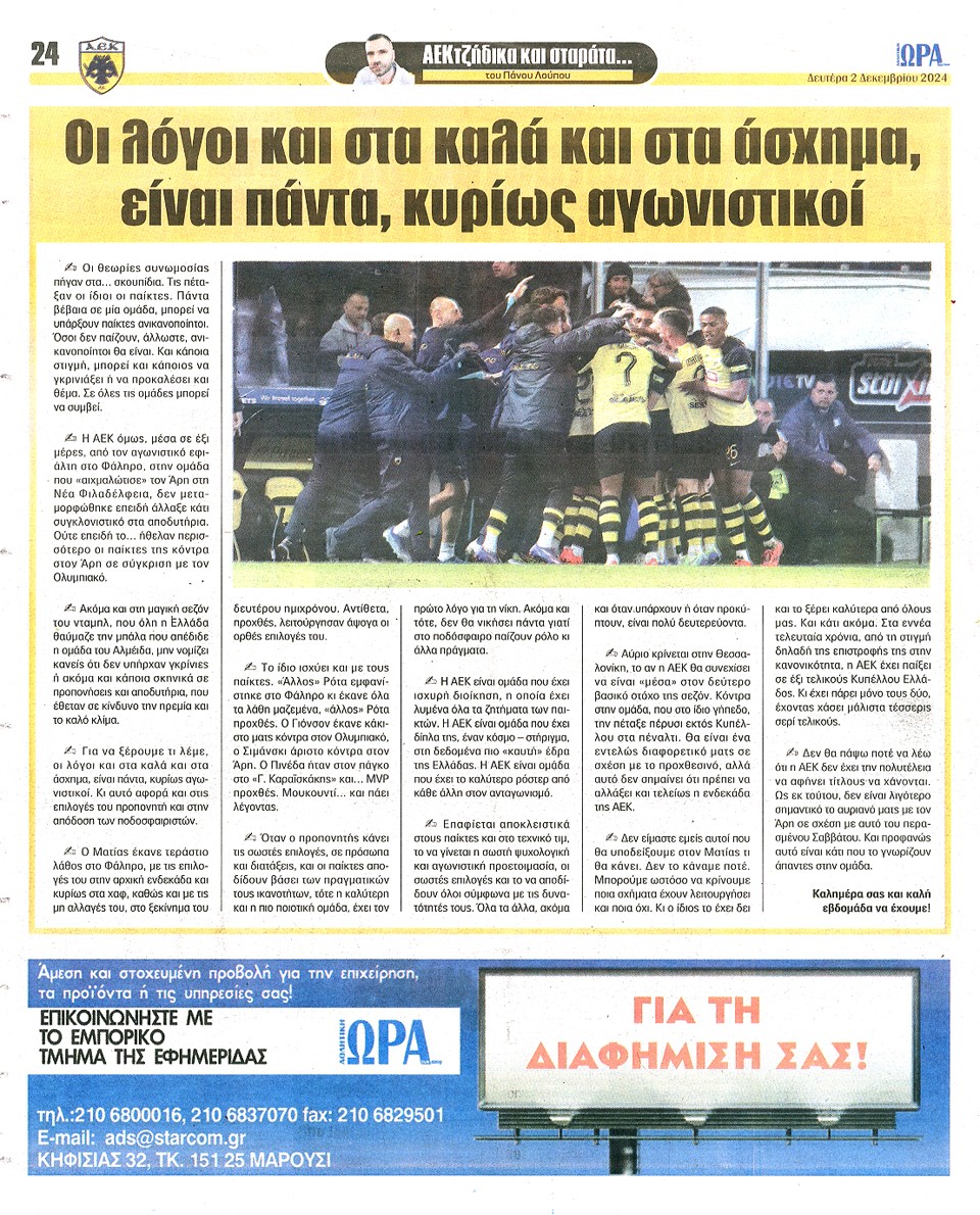 ΑΘΛΗΤΙΚΗ ΩΡΑ ΤΩΝ ΣΠΟΡ - 02 Δεκεμβρίου 2024