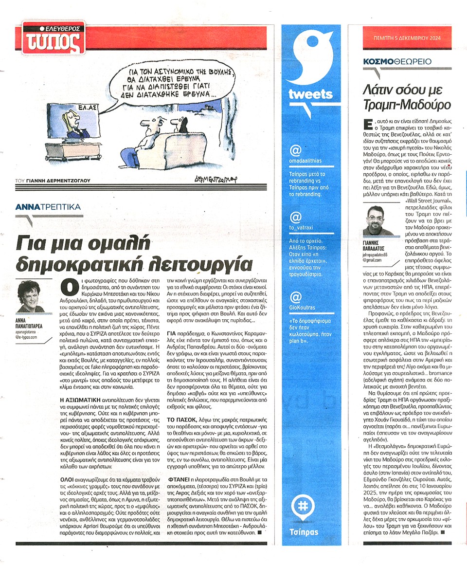 ΕΛΕΥΘΕΡΟΣ ΤΥΠΟΣ - 05 Δεκεμβρίου 2024