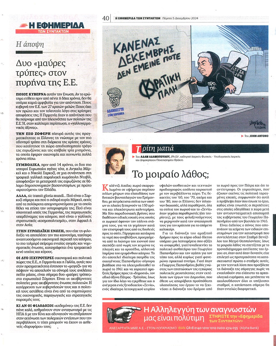 Η ΕΦΗΜΕΡΙΔΑ ΤΩΝ ΣΥΝΤΑΚΤΩΝ - 05 Δεκεμβρίου 2024