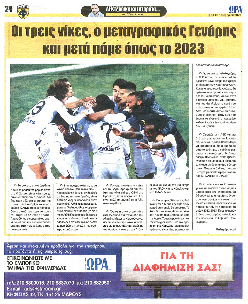 ΑΘΛΗΤΙΚΗ ΩΡΑ ΤΩΝ ΣΠΟΡ - 10 Δεκεμβρίου 2024